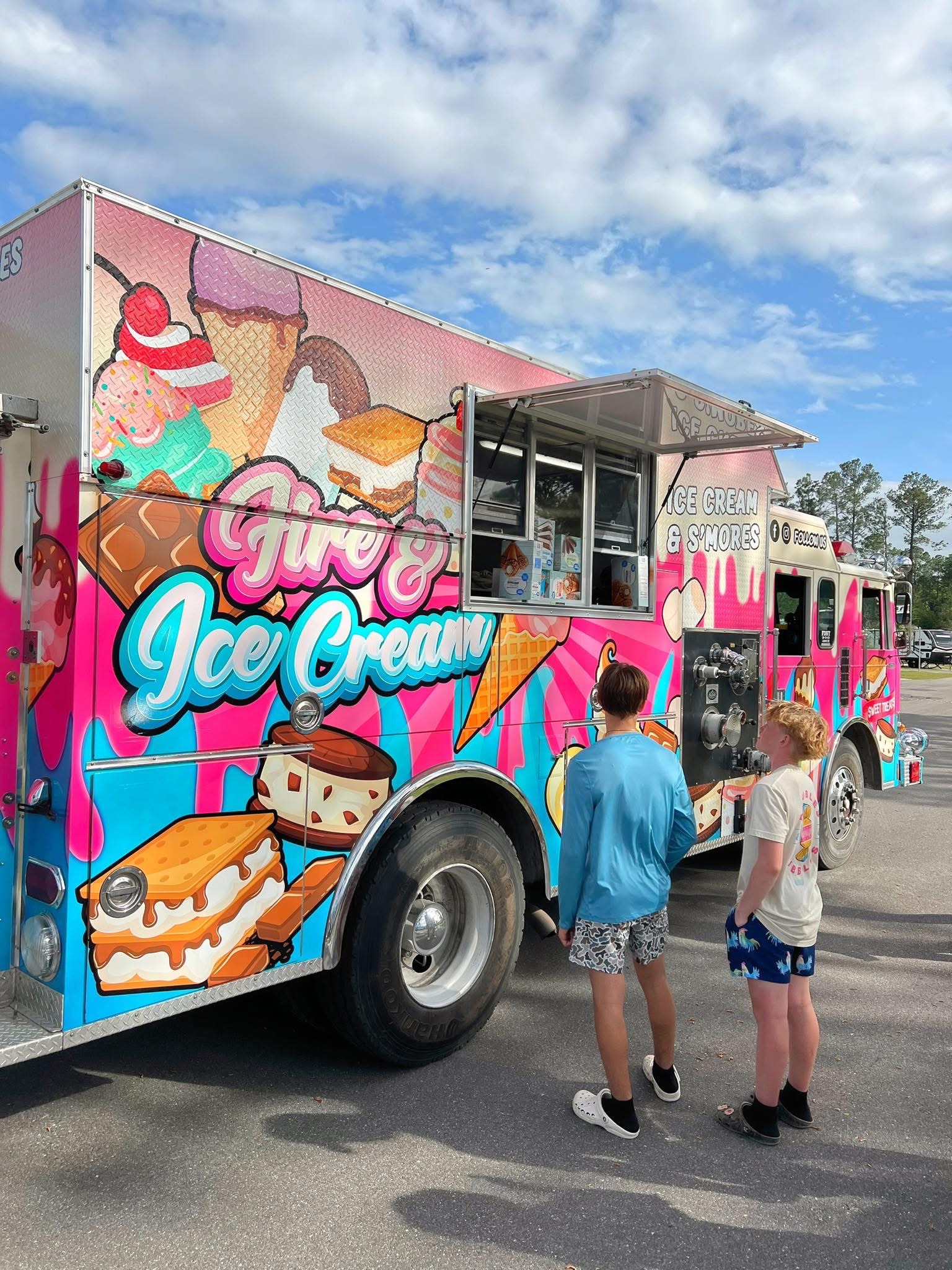 A fire truck turned food truck? Yep — and it’s serving nothing but cool treats and hot nostalgia. The Fire & Ice Cream truck is your go-to spot for hand-scooped ice cream, over-the-top specialty shakes, and sweet s’mores-inspired creations. Parked right here at Island Oaks, it’s a family favorite and the perfect way to chill out after a day of swimming, sports, or live music. Don’t be surprised if it becomes your favorite “emergency stop.”