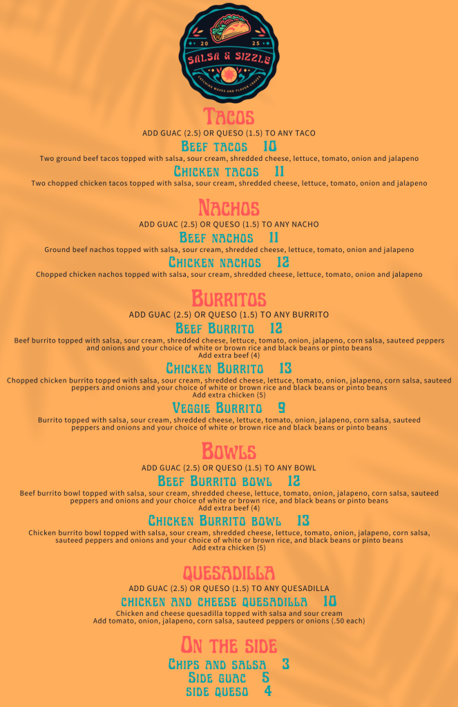 Catching waves and flavor craves — meet Salsa & Sizzle, our beachy bus turned Mexican food truck, serving up bold bites with serious coastal vibes. From burritos and bowls to quesadillas and street tacos, every dish brings the heat (and the flavor). Whether you’re fueling up between adventures or kicking back with friends, Salsa & Sizzle brings the perfect blend of spice, style, and summertime taste.