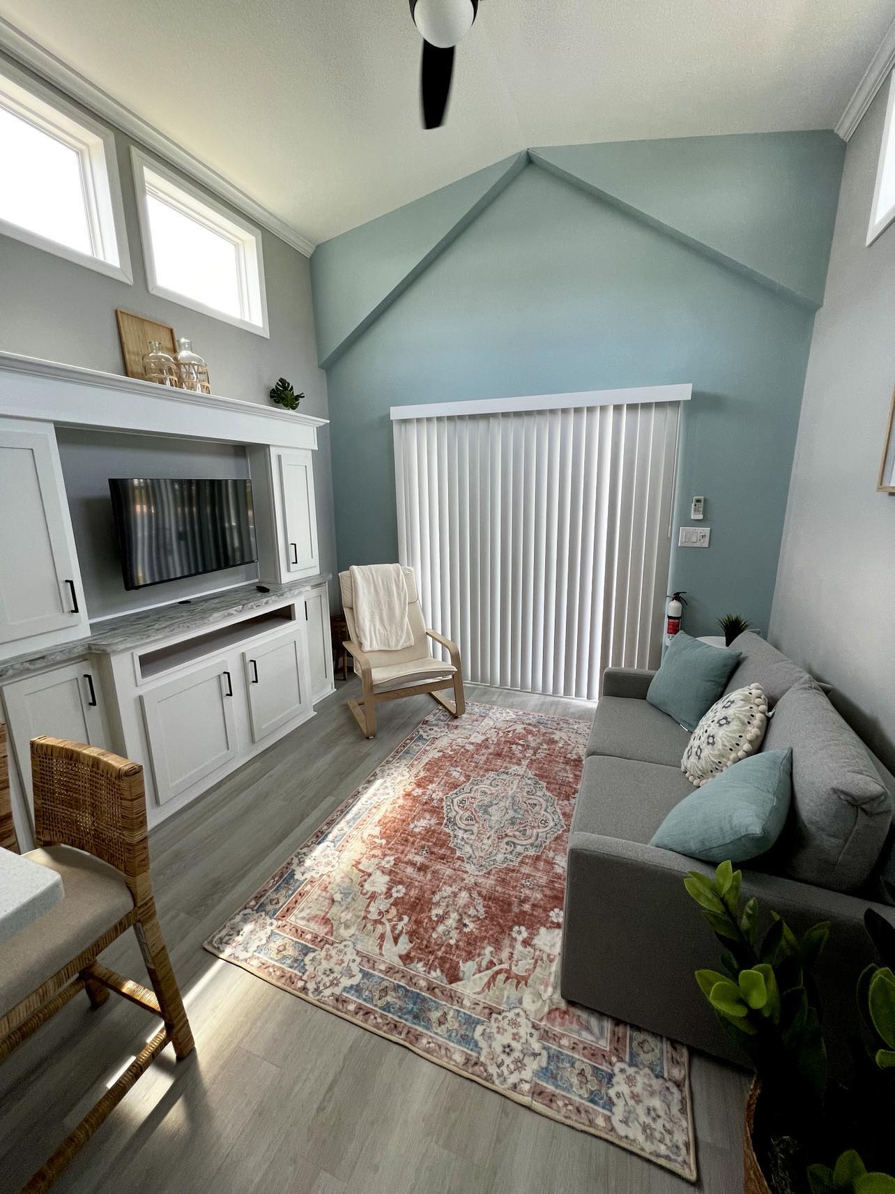 Get ready to fall in love with Cabin 351, your ultimate summer escape! Enjoy the earthy colors— green, grey, and red—that blend perfectly with nature-themed decor and furniture, giving you that sunny Florida feel. This charming cabin has a cozy queen bed and a loft with two twin mattresses, making it perfect for families or friends. You’ll be super comfortable here because the cabin is fully equipped, including a Keurig Duo Coffee Maker for your morning brew. Step outside onto your water-facing porch, fire up the charcoal BBQ grill, gather around the propane fire pit, or enjoy a meal at the picnic table. With parking for two vehicles and space to sleep four, Sunshine Cabin 351 is your dream Florida getaway! Come and enjoy this perfect blend of comfort and nature! Features: 1 queen bed. Loft with steps. Includes 2 twin mattresses. 1 bath with shower. Full kitchen includes Keurig Duo Coffee Maker, dishes, basic cookware and utensils. Towels, linens, and pillows included. Porch facing water. Charcoal BBQ grill, propane fire pit with seating, and picnic table. Parking for 2 vehicles. Sleeps 4.