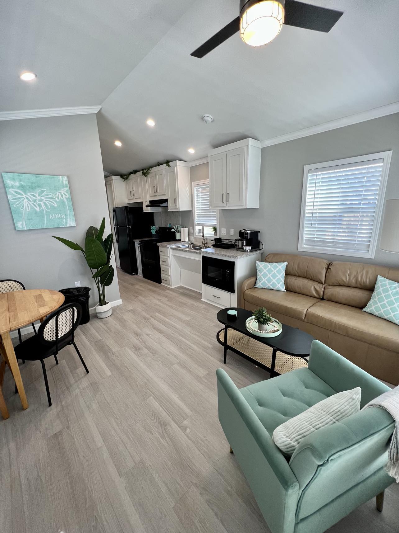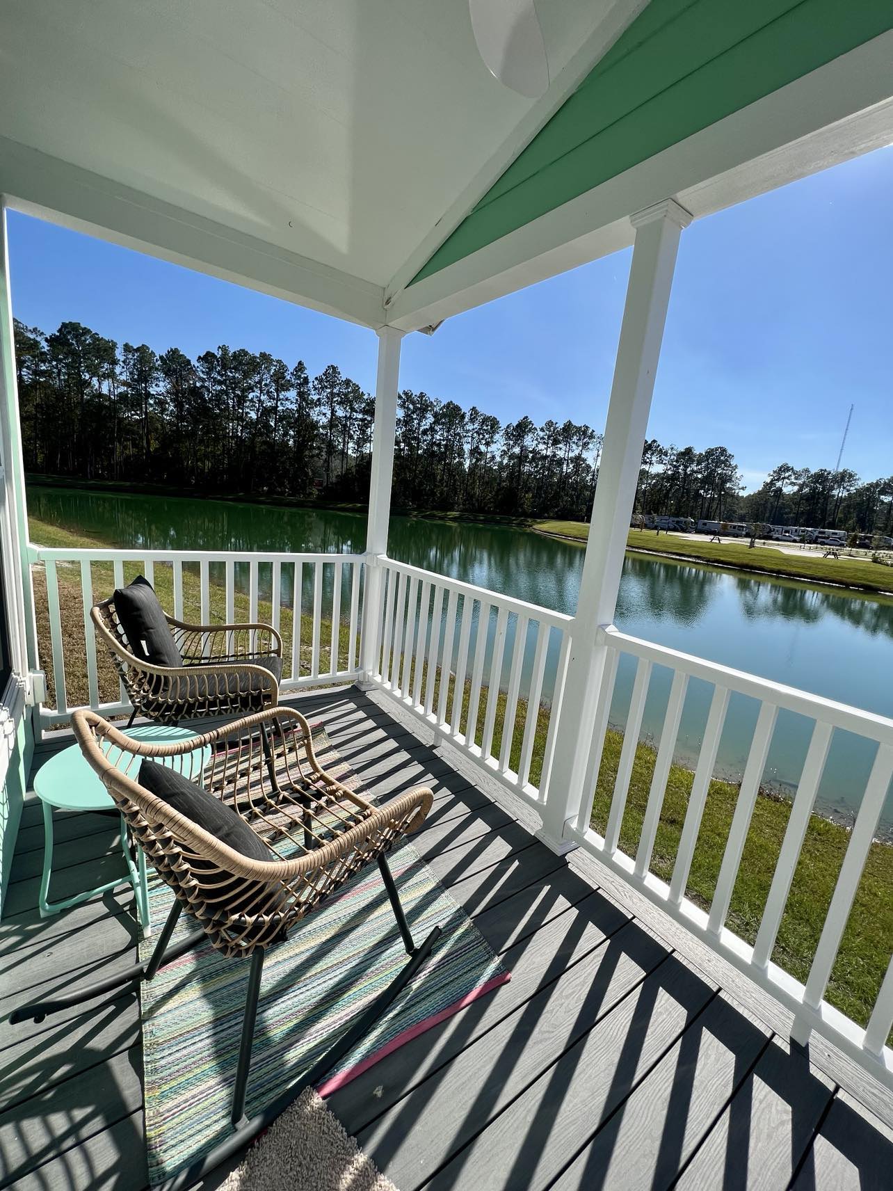 Welcome to Cabin 352 – Mint To Be! Step into a world of minty perfection where every corner is bursting with charm and comfort. Relax in the comfort of 1 queen bed and a cozy sofa set. The fully-equipped kitchen, complete with a Keurig Duo Coffee maker, ensures that your stay is as convenient as possible. And let’s not forget the porch facing the water, where you can soak up the serene surroundings. With features like a charcoal BBQ grill, propane fire pit, and picnic table, outdoor relaxation is an absolute breeze. This rental includes bath towels, linens and any other basic necessities that you may need. This rental is also handicap friendly. Book your stay with us today! We promise it’s “Mint to be”.! Features: HANDICAP FRIENDLY 1 queen bed, 1 sofa set. 1 bath with a shower. Full kitchen includes Keurig Duo Coffee Maker, dishes, basic cookware and utensils. Towels, linens, and pillows included. Porch facing water. Charcoal BBQ grill, propane fire pit with seating, and picnic table. Parking for 1 vehicle. Sleeps 2