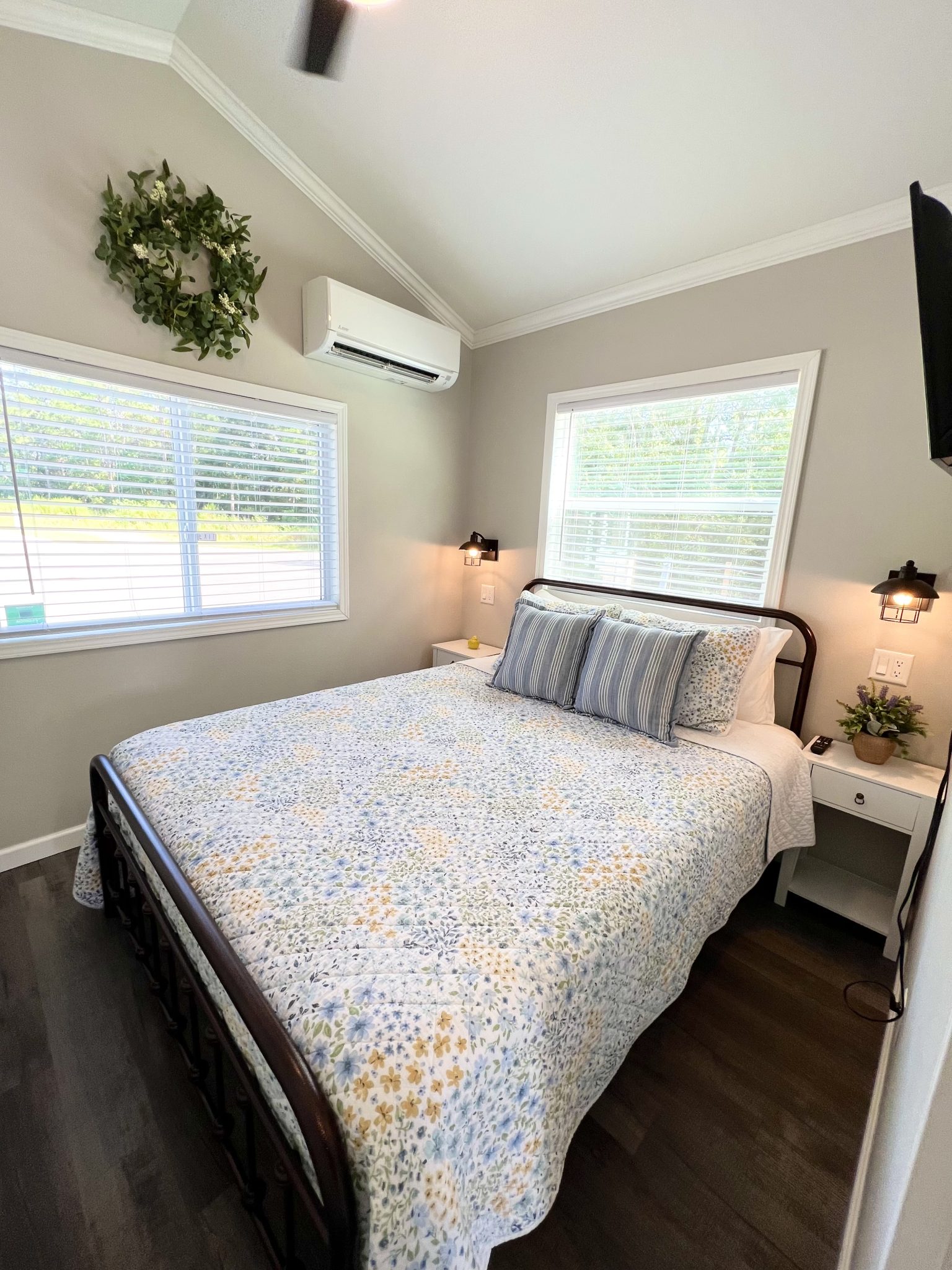 Endless Summer promises year-round comfort with a queen bed and a pullout couch. This cabin is perfect for couples or small families. Enjoy the outdoor charcoal grill and firepit for a complete camping experience. Endless Summer is your go-to cabin for unlimited fun and relaxation. Features: 1 queen bed, 1 pullout couch, Firepit, Grill, Sleeps 4