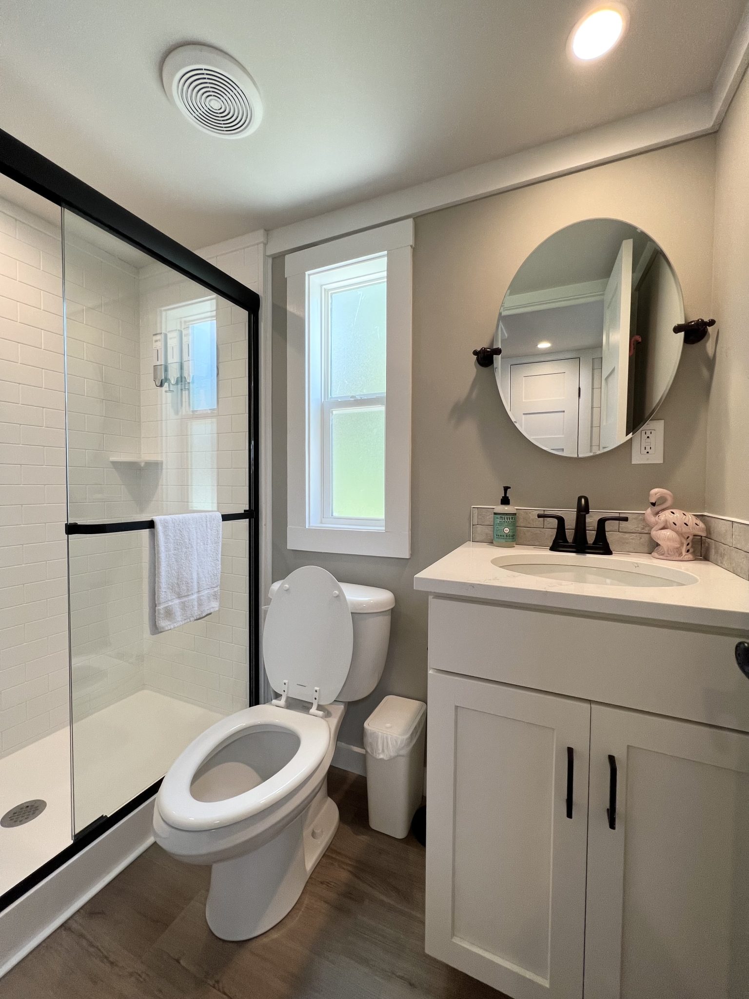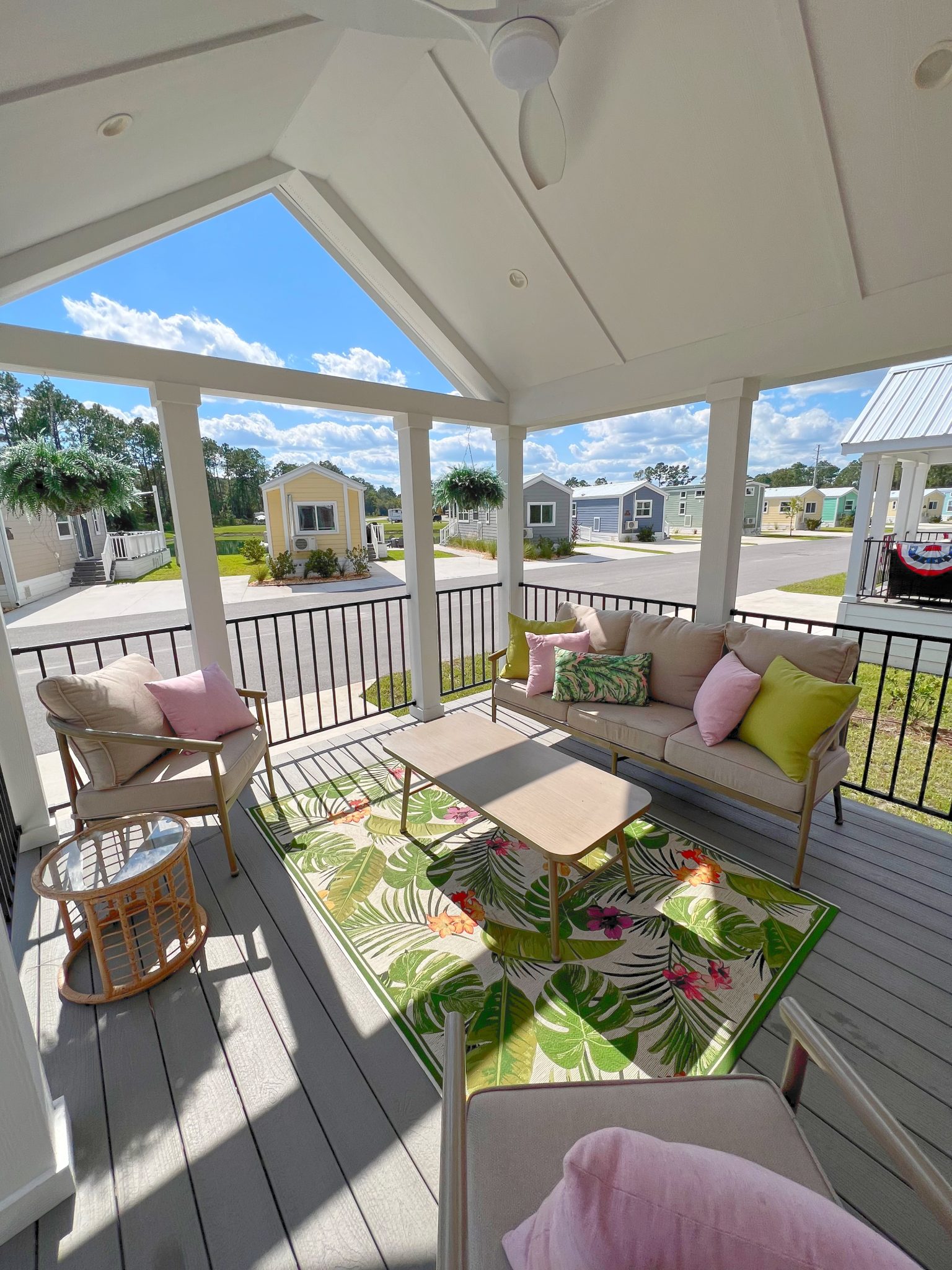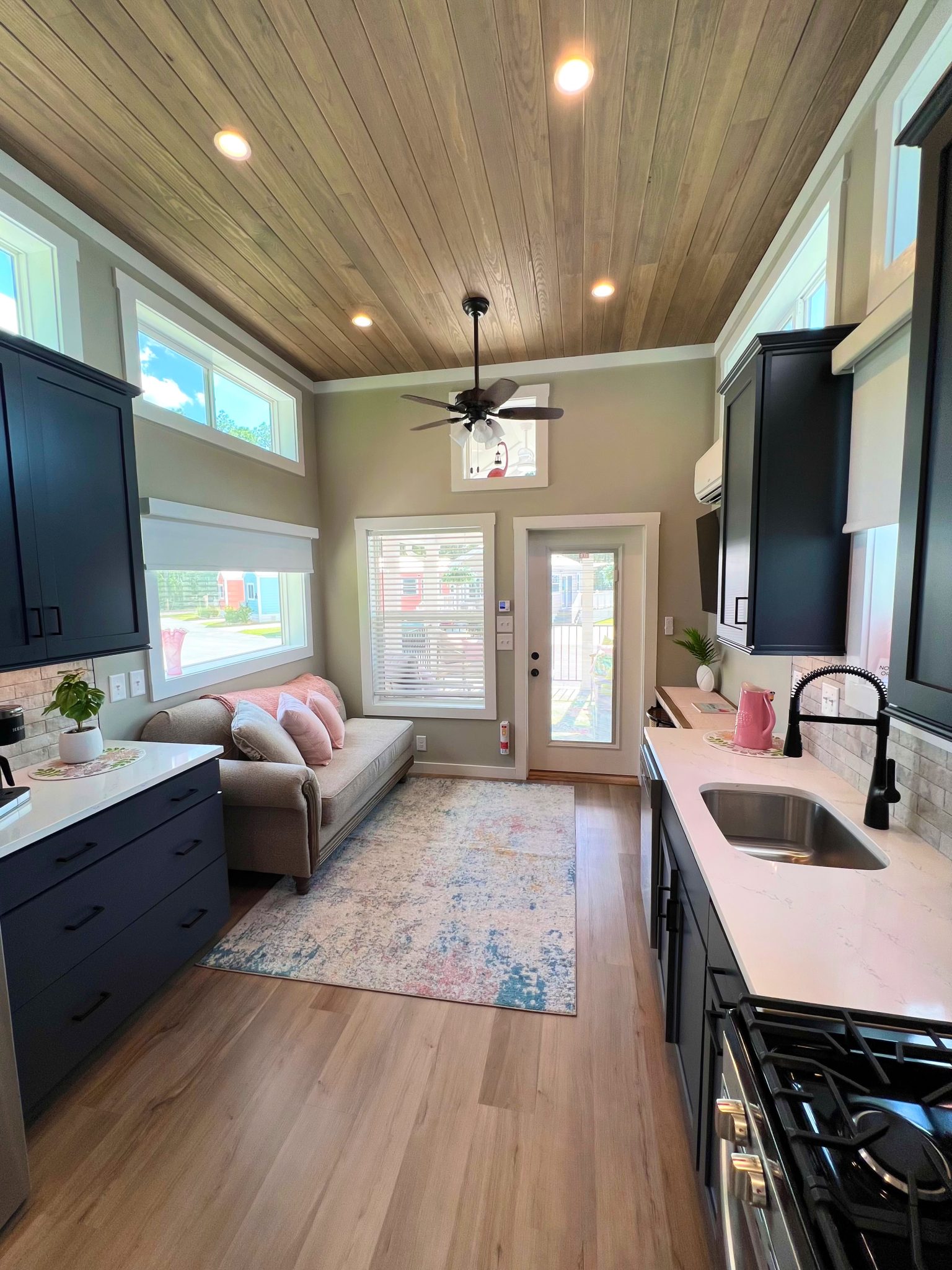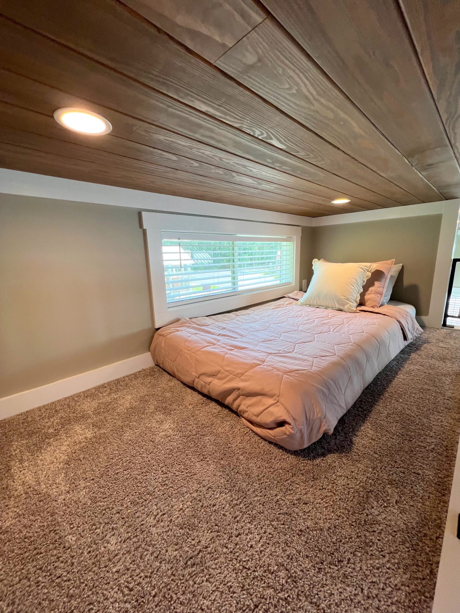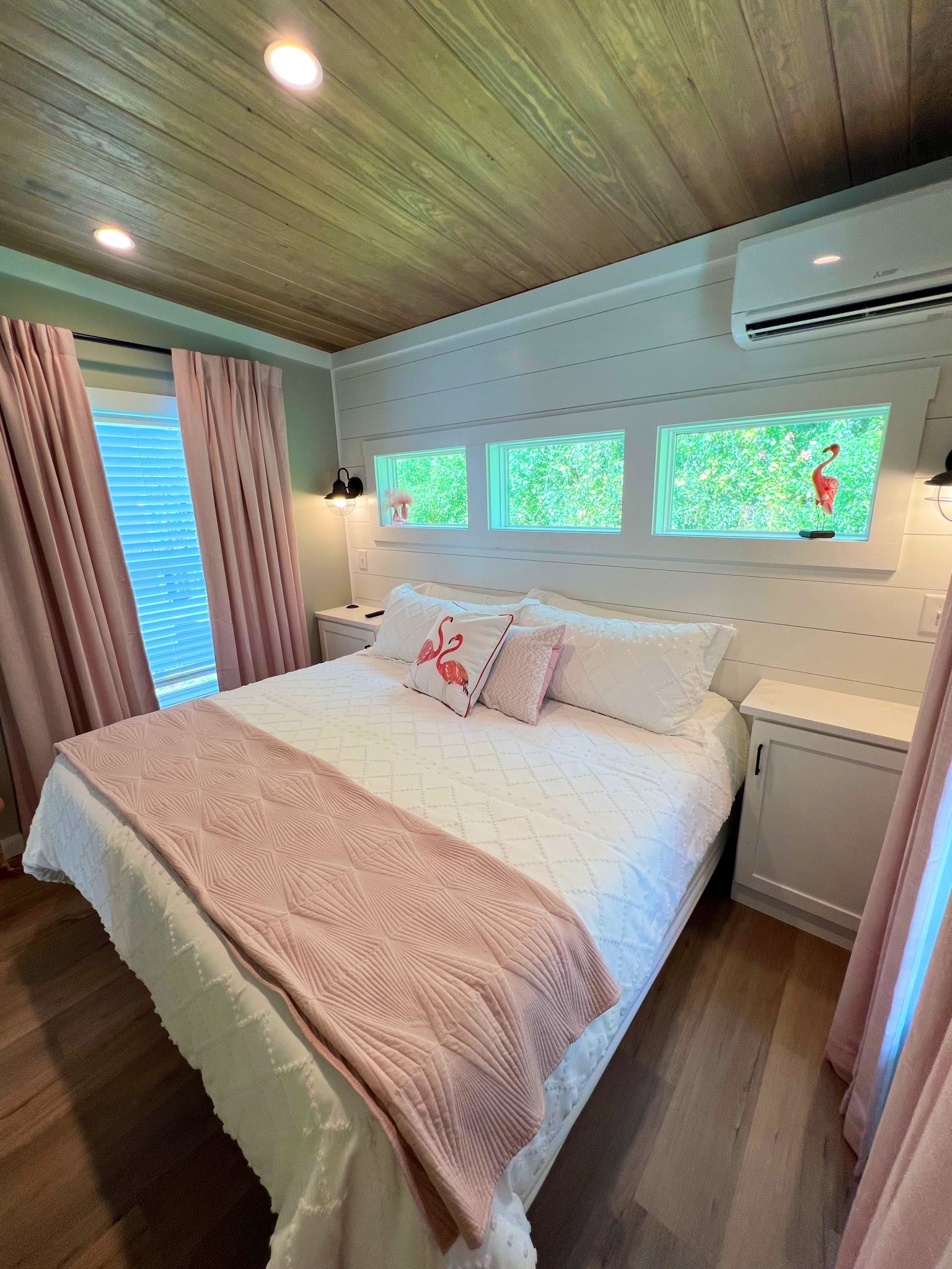 Welcome to 369 Flamingle, where comfort meets style in a beautifully designed getaway. This charming cabin features a unique pink exterior that exudes warmth and playfulness, while the interior offers a calming blend of earthy tones, white, and soft greys. The decor and linens perfectly complement the serene atmosphere, making it an ideal escape for those seeking peace and tranquility. Inside, you’ll find a cozy bed and two bunk lofts, providing ample space for relaxation and a good night’s sleep. The open layout is perfect for unwinding, whether you’re curling up with a book or enjoying the company of loved ones. Outside, spend your evenings by the firepit, roasting marshmallows under the stars, or cook up a feast on the gas grill. The peaceful surroundings make it easy to disconnect from the hustle and bustle of daily life and reconnect with nature. Features – 1 Bed, 2 Bunk Loft, Firepit, Gas Grill, Sleeps 6